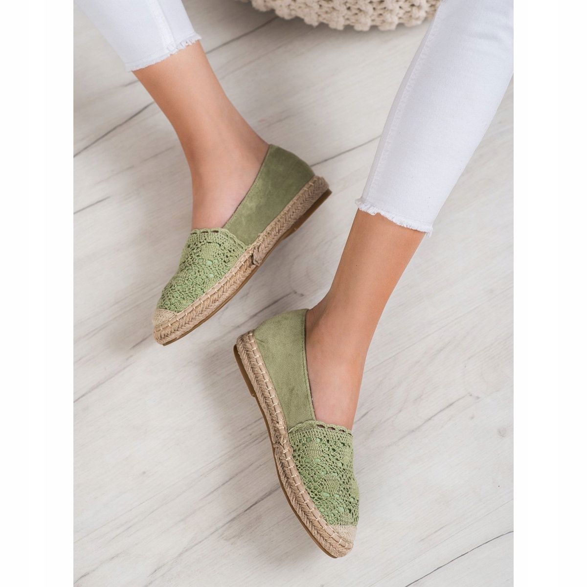 Small Swan Small Swan Espadrile od antilopa s čipkom zelena