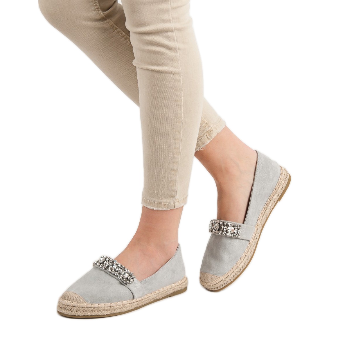 Bestelle Bestelle Espadrile od antilopa s kristalima siva