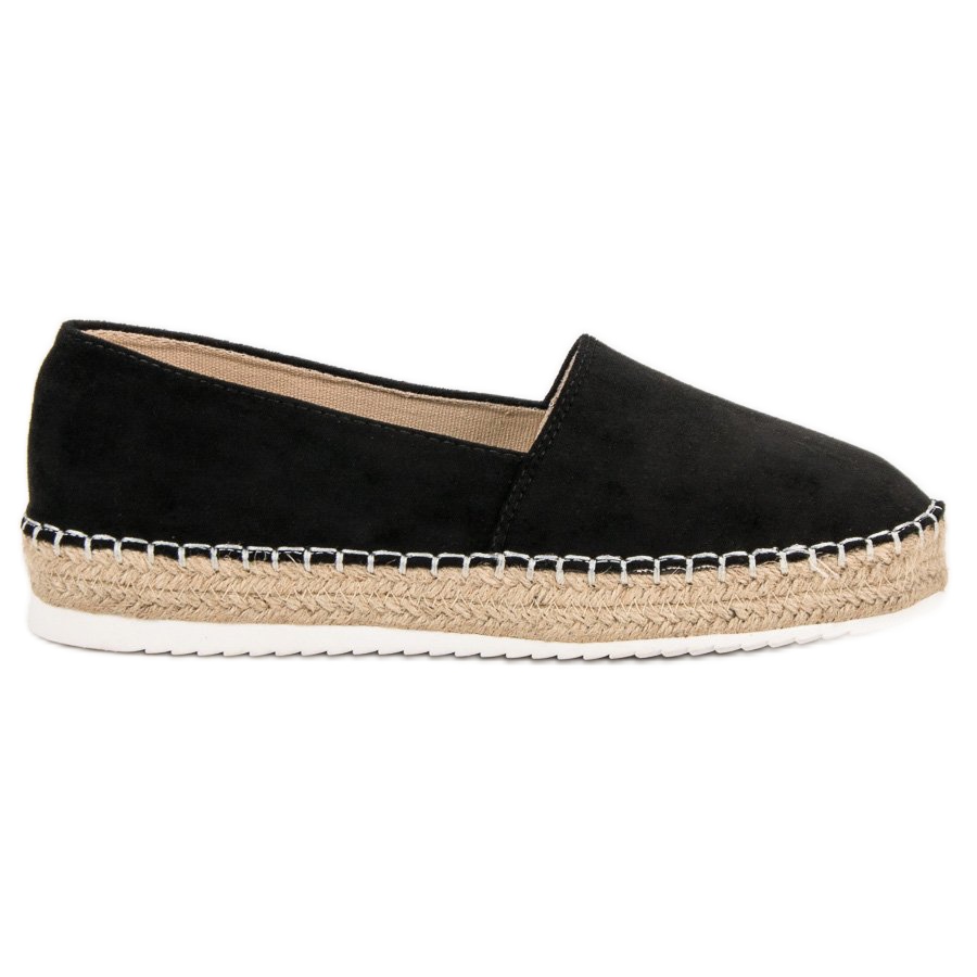**Small Swan Black Suede Espadrile** idealan su prijedlog za žene koje se fokusiraju na udobnost i moderan izgled. Ove lagane i iznimno udobne cipele savršene su kako za svakodnevni styling tako i za elegantnije kombinacije. Zahvaljujući univerzalnoj crnoj boji, ove espadrile lako se kombiniraju uz razne kombinacije - od prozračnih haljina do ležernih hlača.