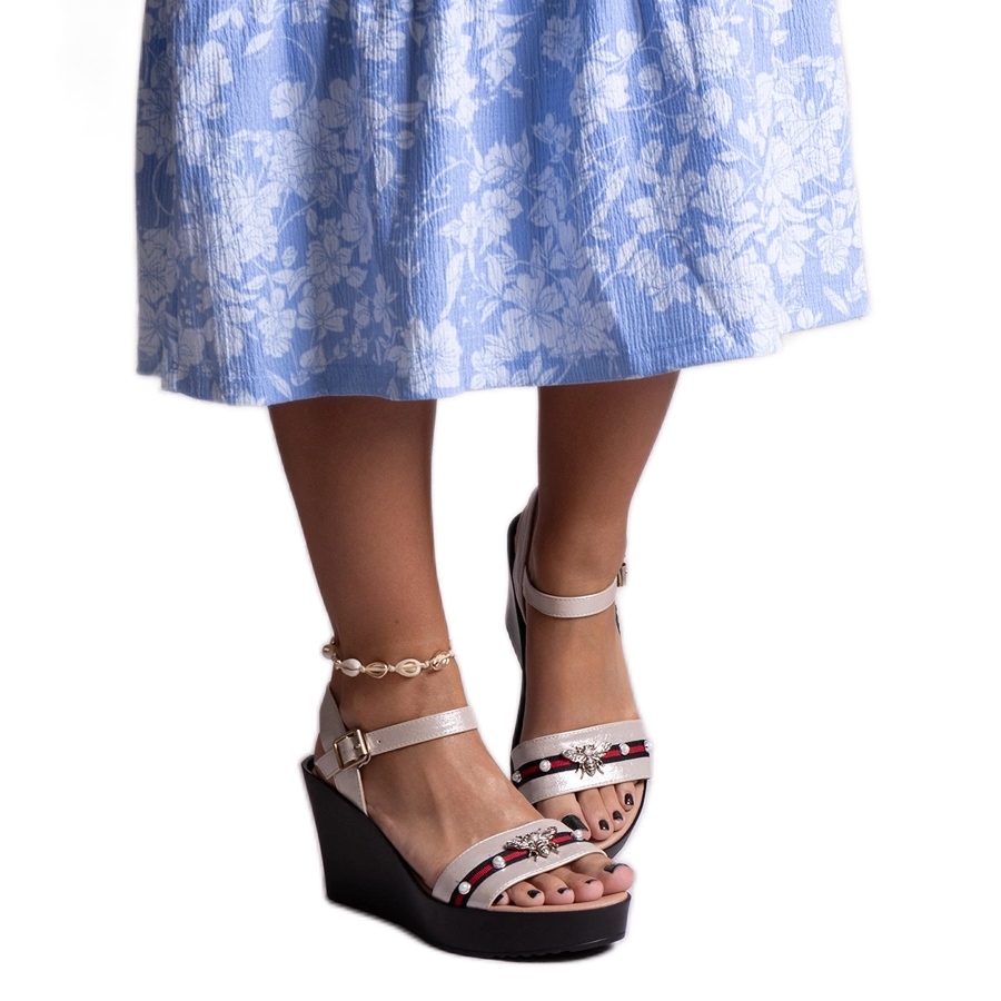- Model: BJ81153-1 Zlatne sandale na klin s ukrasom