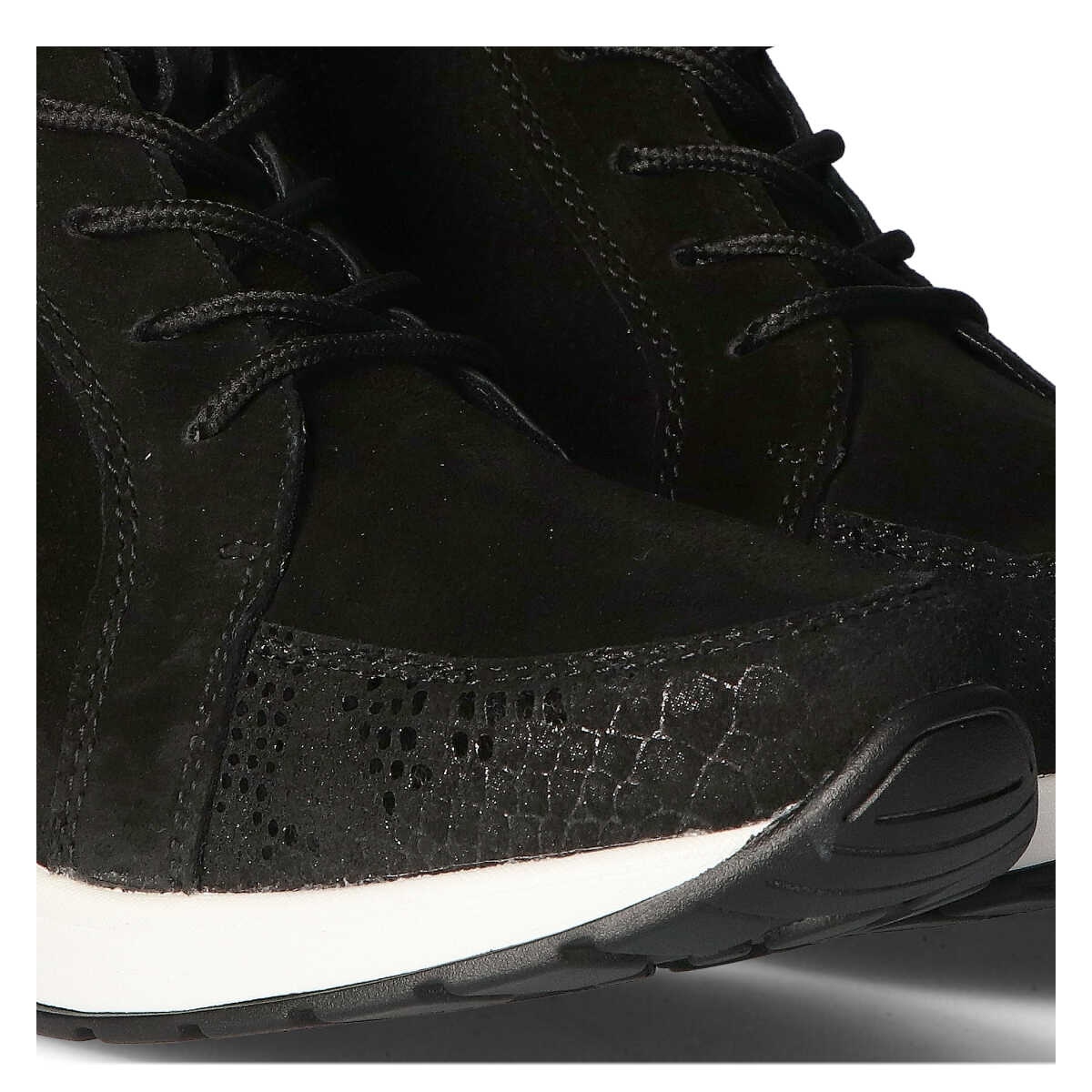 Ovaj model karakterizira okrugli vrh i nisko gornjište od 8 cm, što savršeno pristaje uz nogu, osiguravajući udobnost tijekom cijelog dana. Potplat izrađen od plastike lagan je i izdržljiv, a klin visok 5 cm daje mu moderan karakter. Visina platforme od 1,5 cm čini obuću stabilnom i savršenom za svakodnevne aktivnosti.