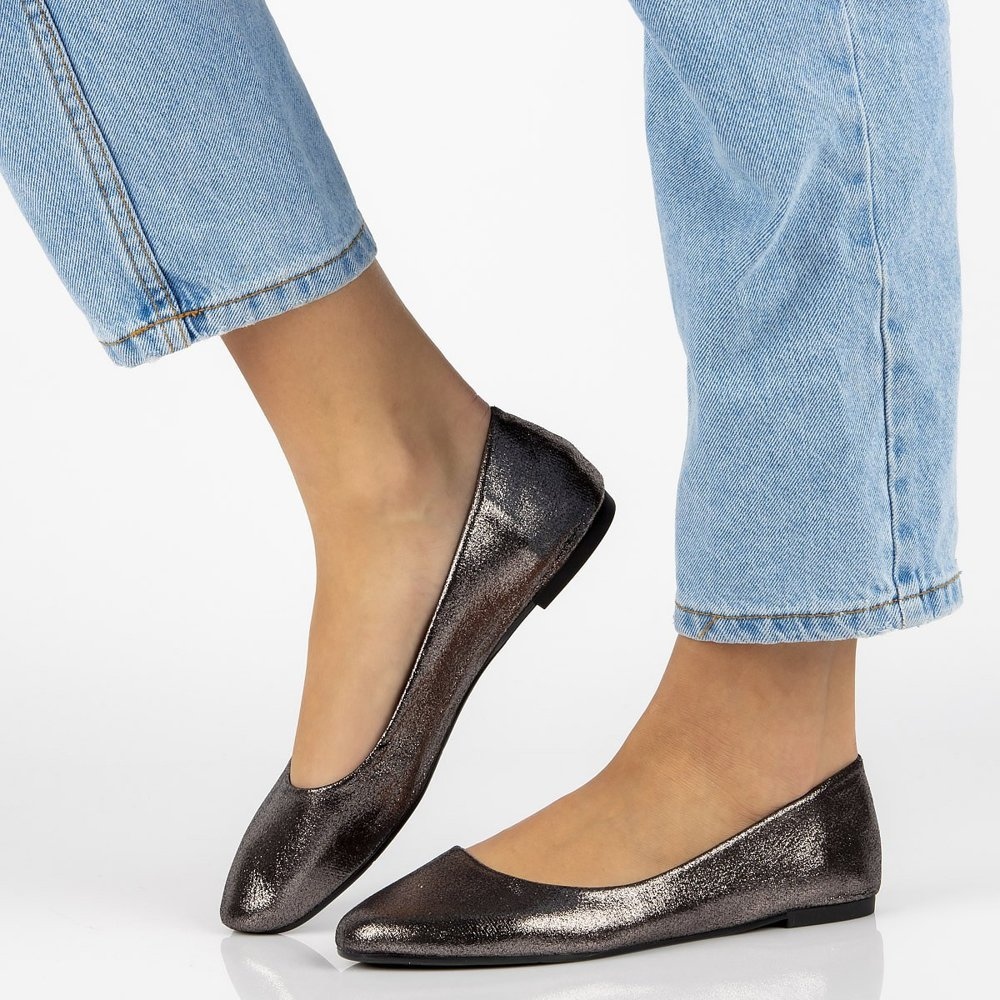 Unatoč minimalističkom dizajnu, ove grafitne balerinke odlikuju se metalnim detaljima koji daju šik. Okrugli vrh i vrh visine 5,5 cm osiguravaju savršeno pristajanje, a G širina čini cipele prikladnim za većinu žena.