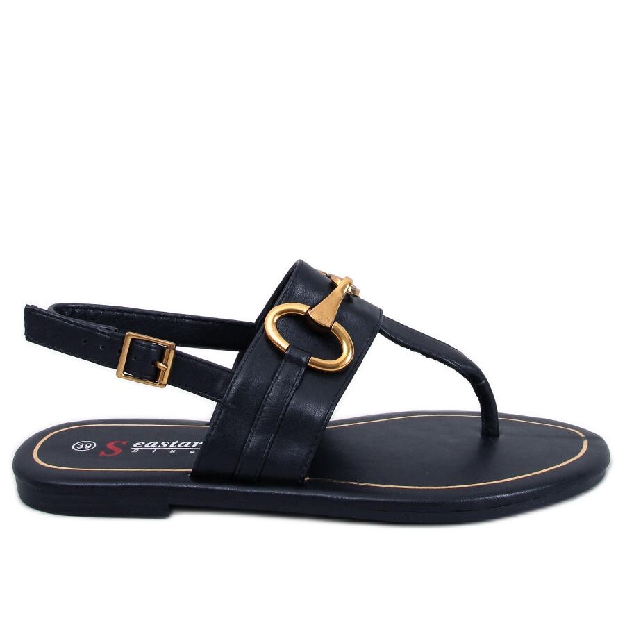 Kombinacija crnih i zlatnih akcenta daje šarm, a ekološka koža kao vanjski materijal osigurava trajnost i estetiku. Zahvaljujući kopči, sandale će savršeno pristajati vašem stopalu, a nedostatak tradicionalnog vrha naglasit će suptilnu lakoću cjelokupnog stila.