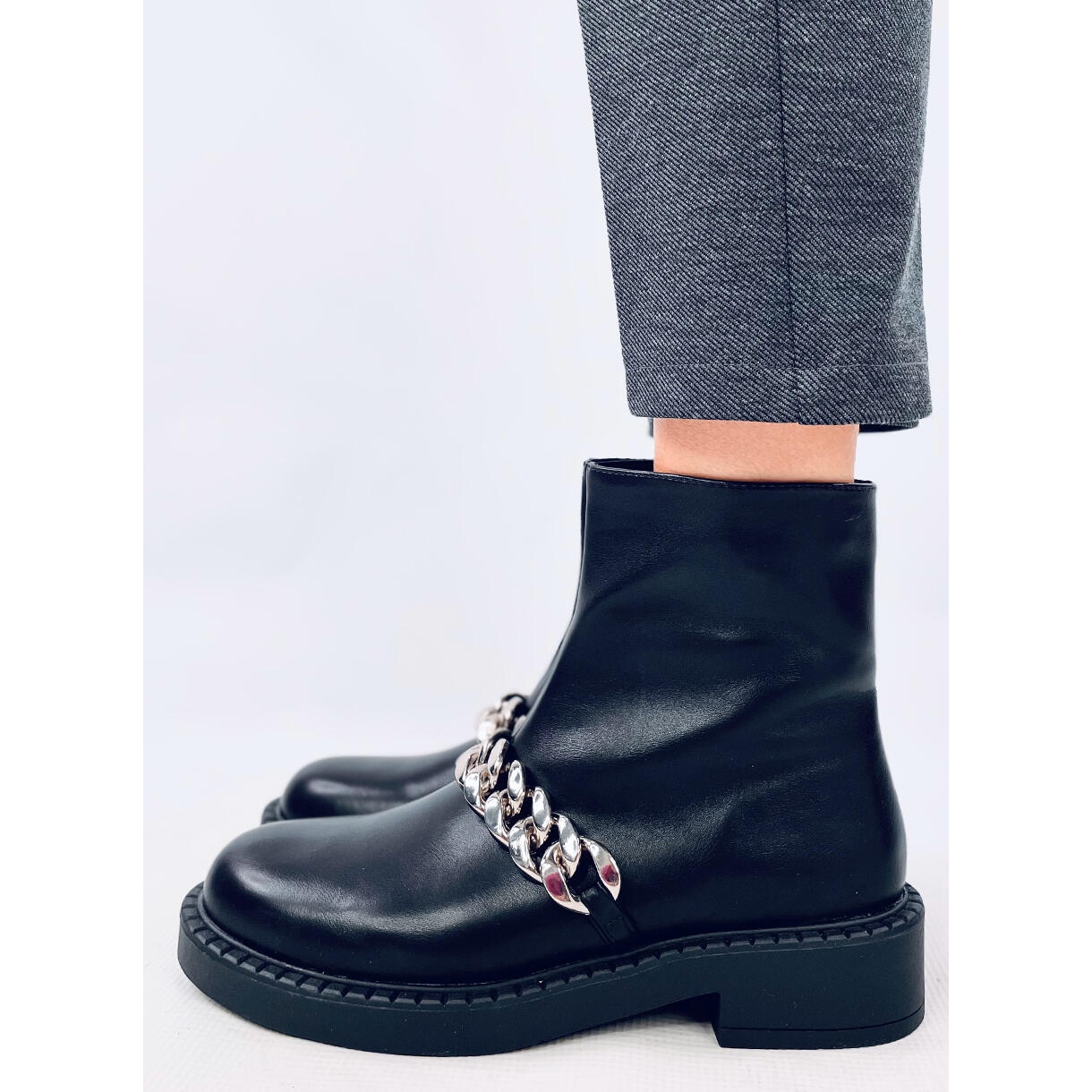 Impresivni srebrni lanac dodaje lik i čini se da se čizme ističu iz drugih modela. Pričvršćivanje patentnog zatvarača sa strane gornjeg dijela je jamstvo udobnosti, omogućavajući brzo stavljanje i uklanjanje cipela. Pored toga, unutrašnjost je obložena osjetljivim krznom, što osigurava udobnost i toplinu, čak i u hladnijim danima.