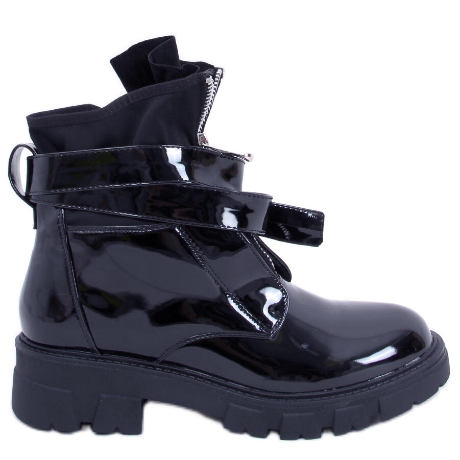 Upečatljive pruge i patentni zatvarač s prednje strane detalji su koji privlače pažnju i daju cipelama originalnost. Crni lakirani završetak savršeno se slaže s različitim stilovima - od ležernog do vojnog, čineći da uvijek izgledate moderno i elegantno.