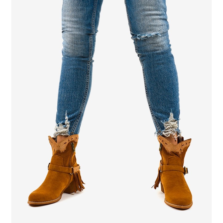 Smeđe gležnjače na visoku petu od brušene kože Generational savršen su odabir za sve žene koje žele spojiti eleganciju s boho štihom. Njihov jedinstveni dizajn inspiriran američkim vesternima vraća nas u prošlost, dodajući malo karaktera i originalnosti svakom stajlingu. Izrađene od visokokvalitetne umjetne antilop kože, ove su gležnjače elegantne i ekološki prihvatljive.
