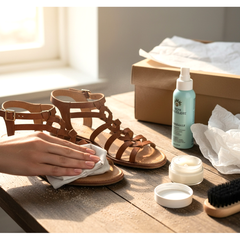 Sandale nošene ljeti izložene su puno intenzivnijem kontaktu s vanjskim čimbenicima nego zimske čizme – znoj, voda, pijesak, krema za sunčanje. Redovita njega ključ je da gladijatorice izgledaju lijepo tijekom cijelog ljeta i još mnogo sezona.