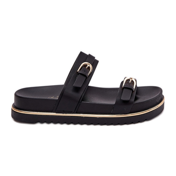 Pojedinosti: Glatke ženske papuče na platformi s prugama i stezaljke crne crna