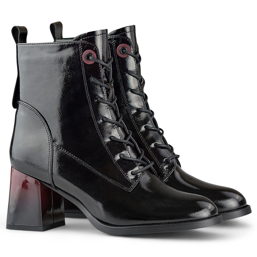 Pojedinosti: Gležnjače na vezanje, elegantne lakirane gležnjače crna
