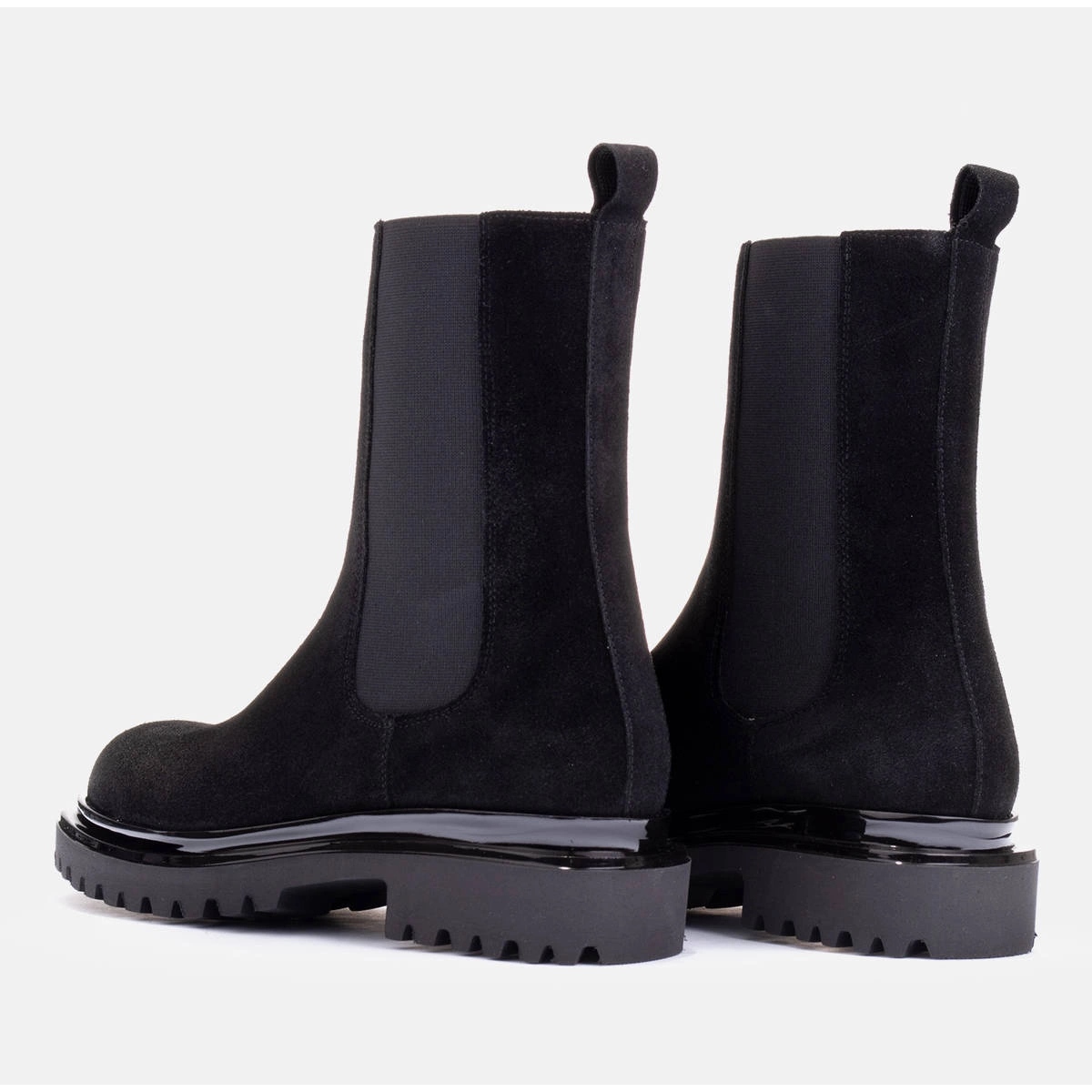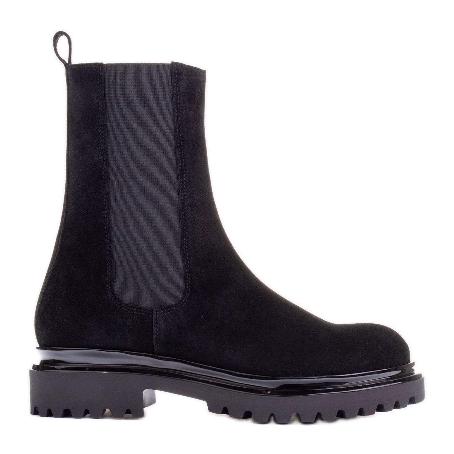 Elegantne, udobne marco cipele ženske chelseats izrađene od prirodne antilop kože u univerzalnoj crnoj boji. Model gležnja s izoliranim umetom od filca, ravna peta od 2,5 cm i kliznim pričvršćivačem - savršen za hladnije dane u jesenskom sezoni zime.