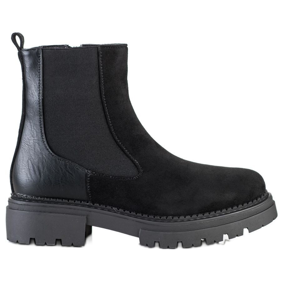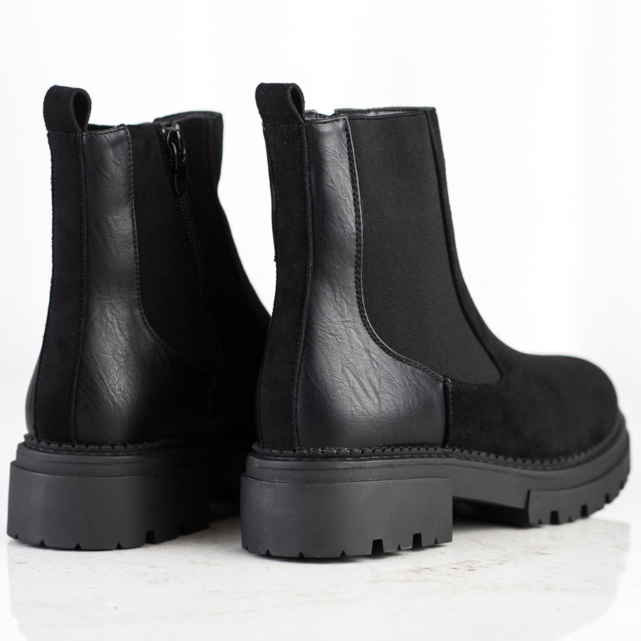 Čizme karakterizira izgrađena i ukrućena peta koja osigurava stabilnost i udobnost nošenja. Visoka potpetica od 4 cm i visina platforme od 2,5 cm čine ove cipele ugodnima za cjelodnevno nošenje. Okrugli vrh dodaje dodatnu udobnost, a gornji dio do gležnja pruža odgovarajuću potporu.