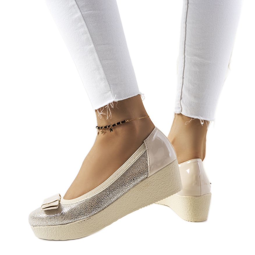 Golden Corker pumpice na klin bež zlatni