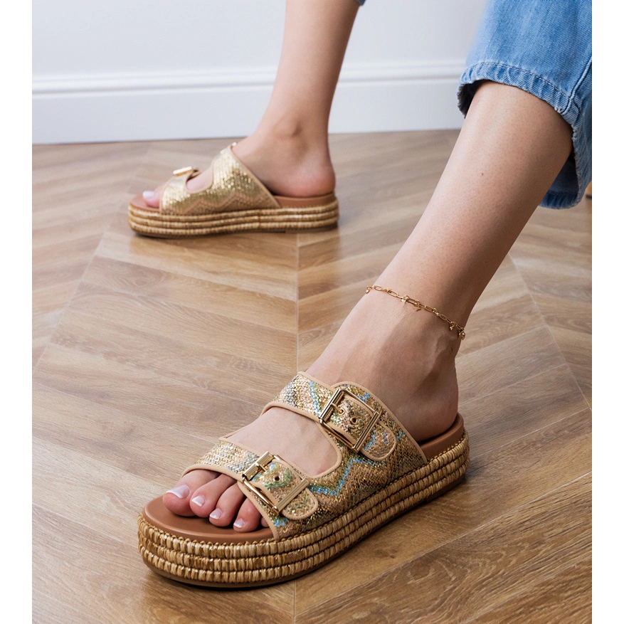 Golden Flip Plops sa prugama obavezno su za nadolazeću sezonu! Stvoreni za žene koje žele kombinirati eleganciju s dnevnom udobnošću, ovi klasični flip flops dodati će sjaj u bilo koju stilizaciju. Njihova sjajna, zlatna boja ističe se od drugih modela, što ih čini idealnim izborom za ljetne šetnje, sastanke s prijateljima ili opuštanje u vrtu.