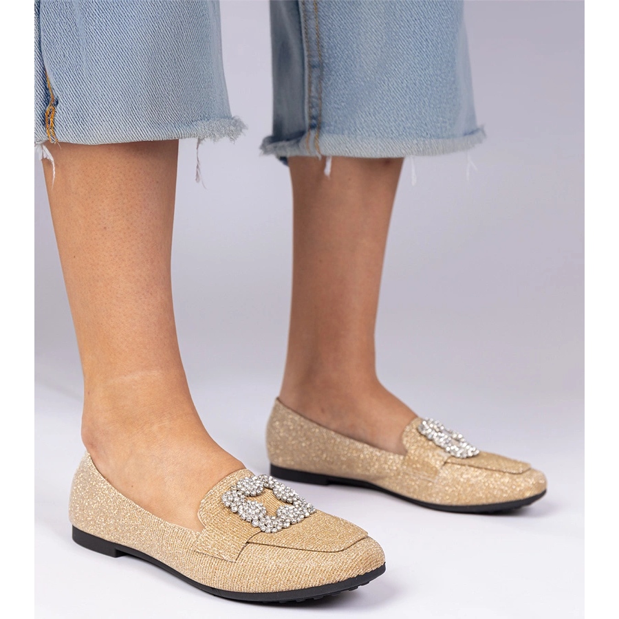 Pojedinosti: Golden Glitter Loafers s cirkonima zlatni