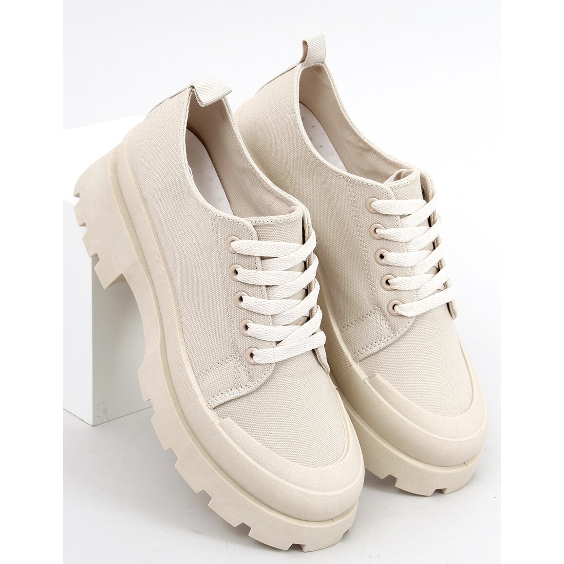 Izuzetno udobne, zahvaljujući debelom potplatu pružaju udobnost i pri dužim šetnjama. Njihova niska visina i okrugli vrh čine ih savršenima za svakodnevno nošenje, a glatki uzorak daje im elegantan izgled. Tenisice od tkanine lako je stilizirati, što vam omogućuje da ih kombinirate s različitim odjevnim kombinacijama – od ležernih do onih sportskijih.