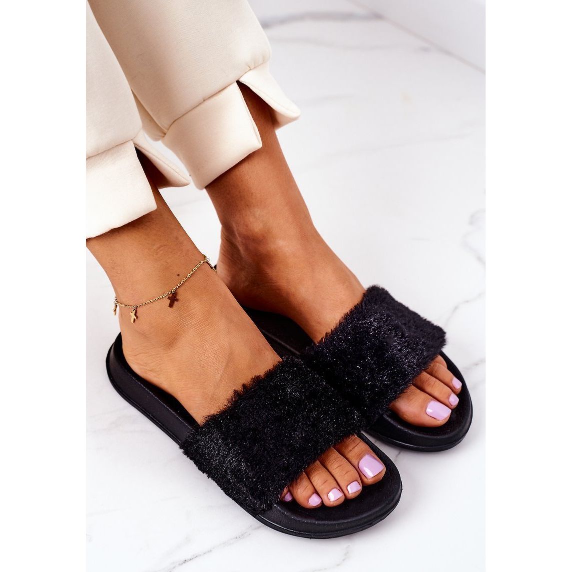 PE1 Gumene papuče s crnim šmirglom od krzna crna