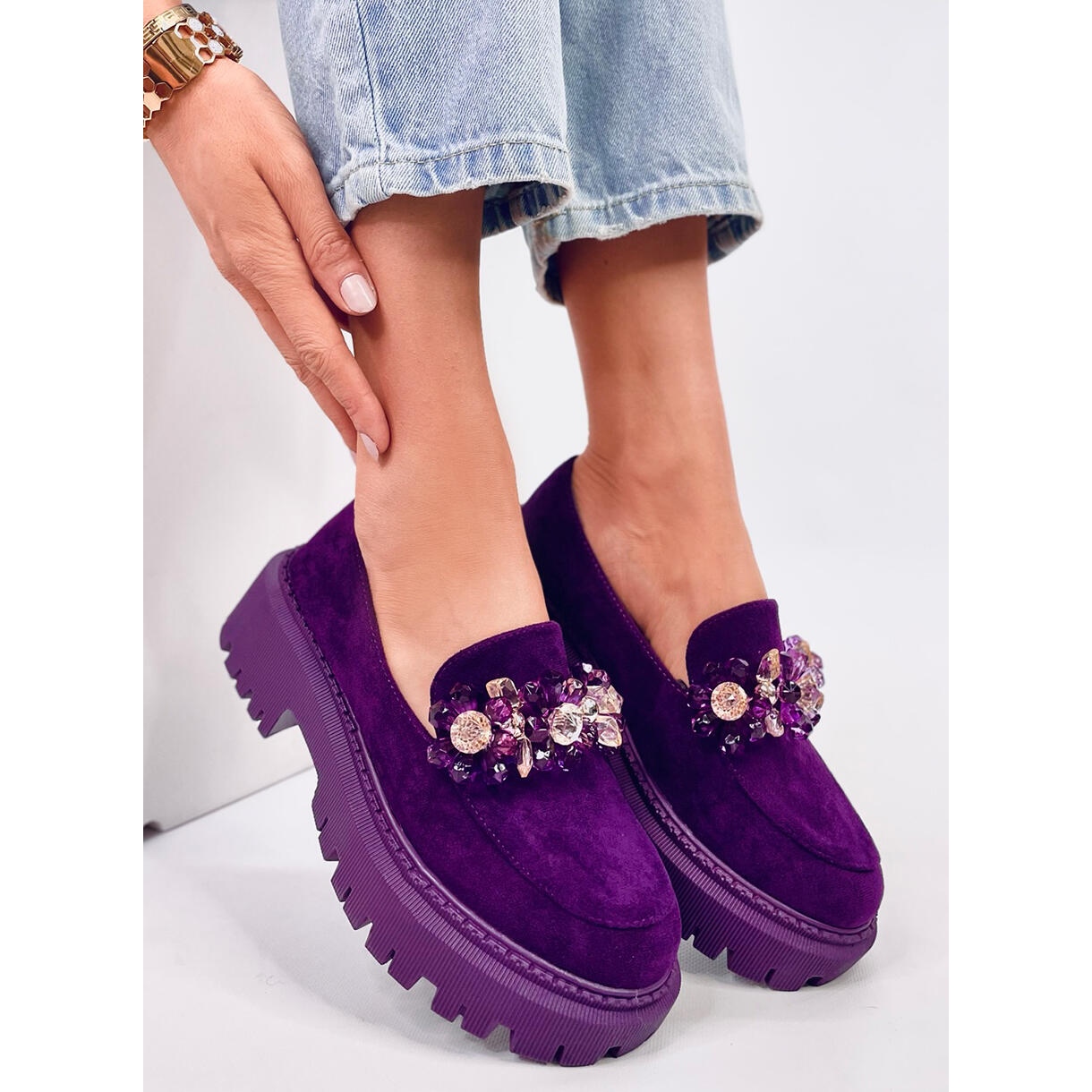 Heidi Purple mokasinke s kristalima savršen su izbor za žene koje se žele istaknuti iz mase. Ove prekrasne ljubičaste mokasinke na ravnoj platformi spajaju eleganciju i neobičan stil zahvaljujući dodacima u obliku sjajnih kristala. Ovo su savršene cipele za svaki dan koje se uspješno kombiniraju uz svečaniju odjeću, dodajući dašak ekstravagancije svakom outfitu.