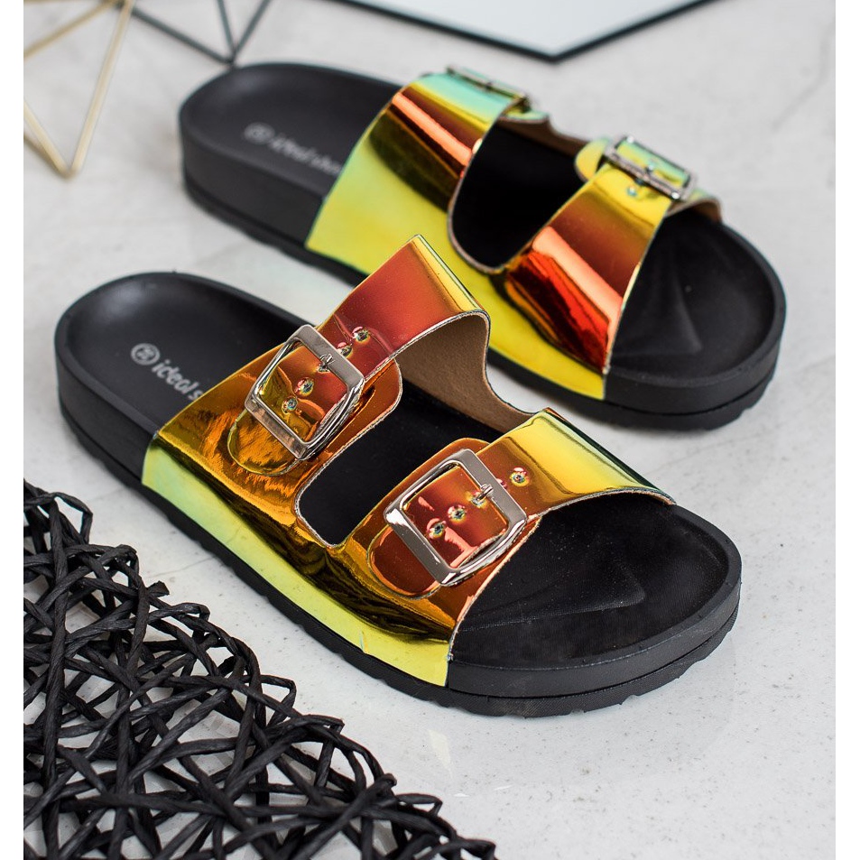 Ideal Shoes Ideal Shoes Holo kopče papuče žuta boja