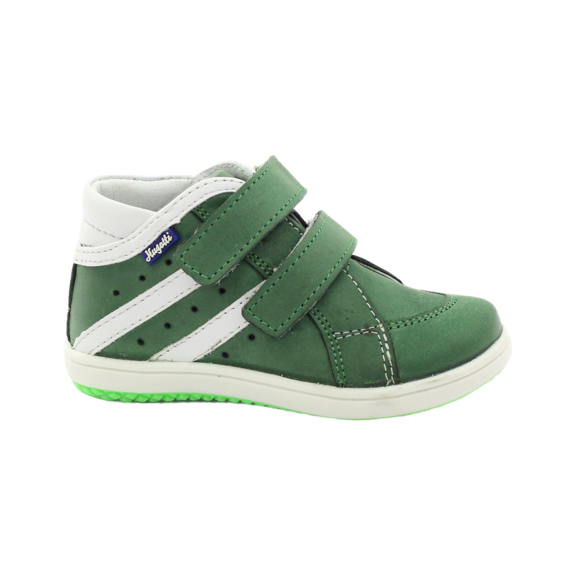 Hugotti kožne cipele s čičkom u zelenoj i bijeloj boji savršen su izbor za aktivnu djecu koja trebaju udobnost i stabilnost. U potpunosti izrađene od prirodne kože, ove neizolirane cipele pružaju odgovarajuću ventilaciju i udobnost nošenja u proljeće i jesen.