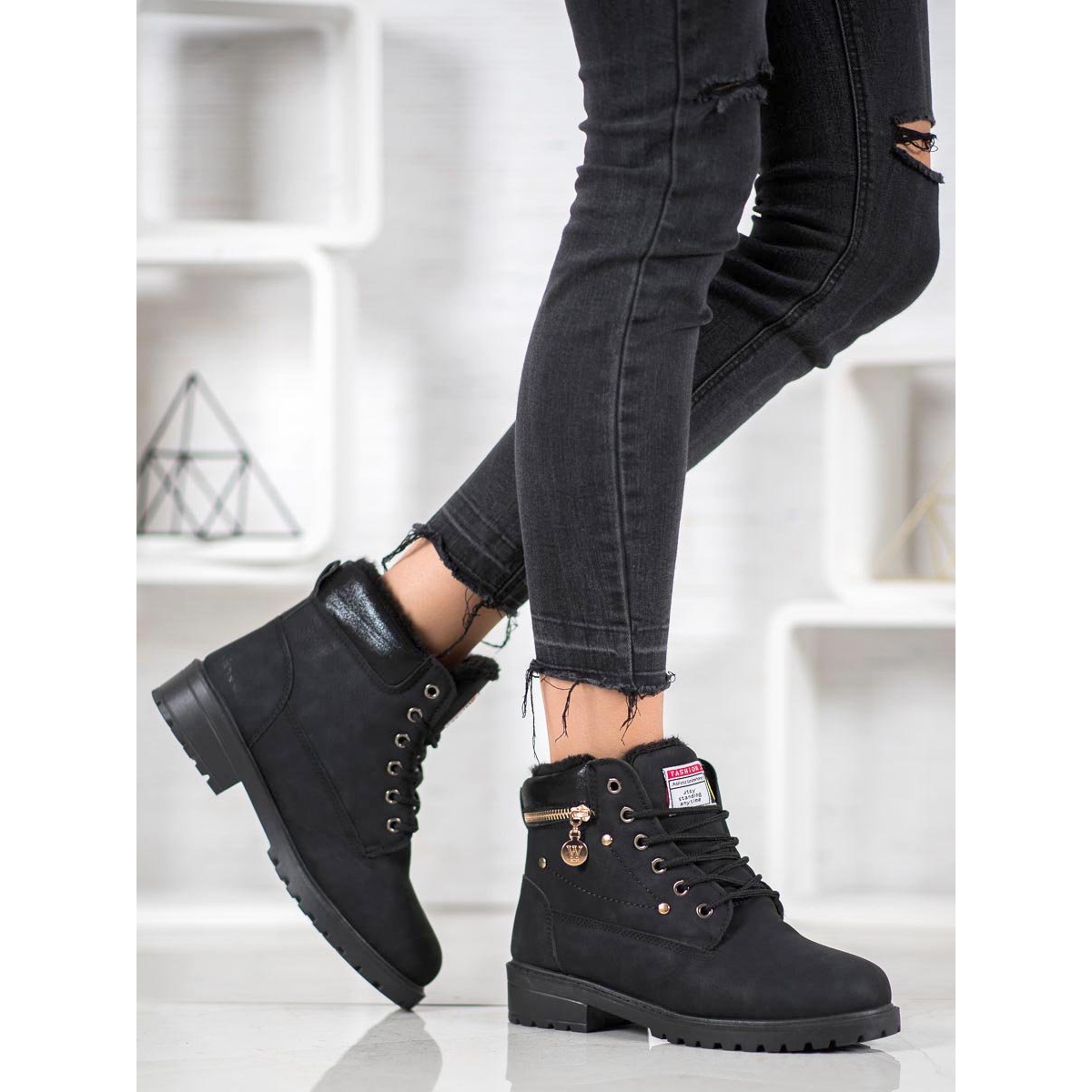 Riječ je o čizmama SHELOVET koje spajaju moderan dizajn i udobnost nošenja. Izrađene od visokokvalitetne ekološke kože u klasičnoj crnoj boji, kroja do gležnja, ove cipele savršene su za hladne dane, nudeći ne samo stil, već i odgovarajuću unutarnju izolaciju u obliku mekanog krzna.