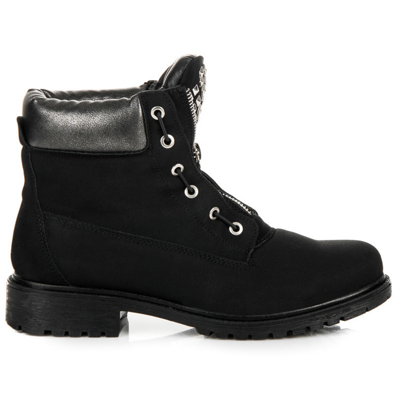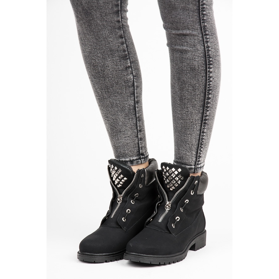 Kamenčići koji ukrašavaju ove čizme daju im jedinstven karakter, što ih čini odličnim izborom za ljude koji se žele istaknuti iz gomile. Okrugli vrh i kopčanje na vezice osiguravaju ne samo moderan izgled, već i udobnost korištenja. Potplat s gazištem od plastike jamči odgovarajuće prianjanje i stabilnost na svakoj podlozi.