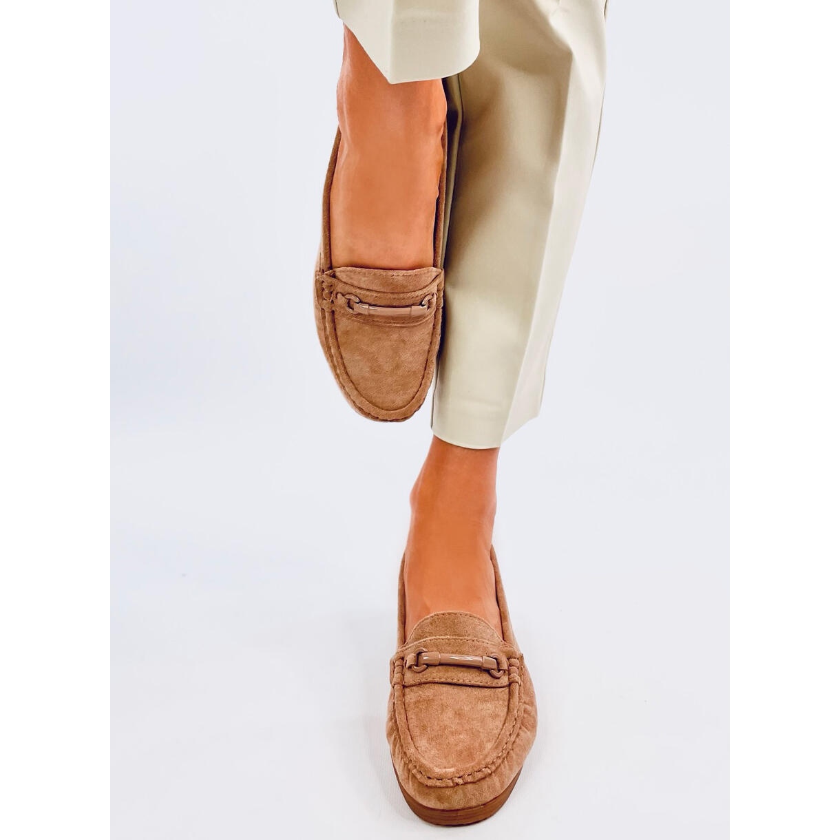 Nudimo jedinstvene mokasine za kaki indijski klin u bež nijansi, koji su savršeni za svakodnevne stililizacije. Ove elegantne ženske cipele, izrađene od visokokvalitetne ekološke antilop, kombiniraju klasike sa modernošću. Njihov suptilni rez s nježnom kopčom daje im jedinstveni karakter, a glatki materijal čini ih izuzetno svestranim.