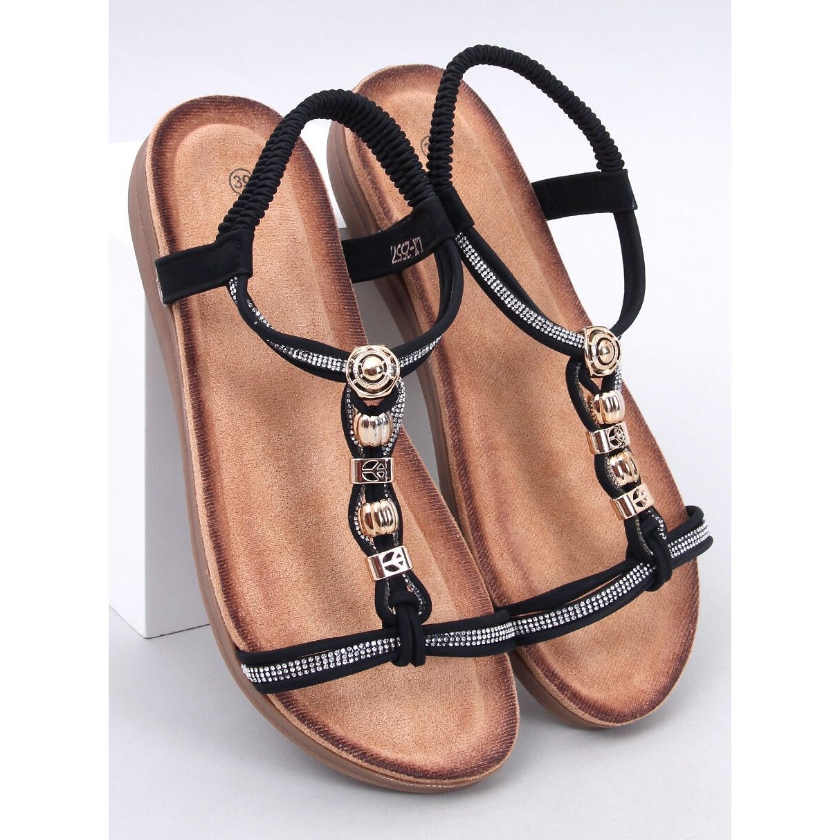 Upoznajte sandale ukrašene crnim cirkonima Isabey - savršen izbor za žene koje žele svakodnevno kombinirati eleganciju s udobnošću. Ove crne sandale na gustom potplatu razlikuju se jedinstvenim stilom, zahvaljujući zlatnim detaljima i sjajnim cirkonima koji im daju jedinstveni sjaj. Ovo je izvrsna opcija za one koji se ne žele brinuti zbog dodataka, jer su ove sandale same po sebi izražajni ukras!
