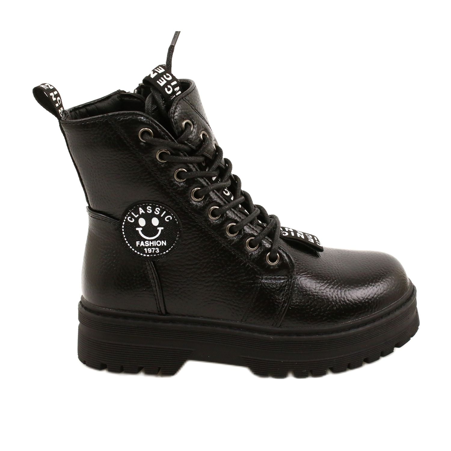 Elegantna crna boja čini da čizme pristaju uz gotovo svaki stajling, a ukrasni print dodaje djevojački šarm. Mekana podstava osigurava udobnost nošenja, a moderno pletene vezice praktičan su i ujedno moderan naglasak. Zatvaranje na patentni zatvarač je izuzetno udobno pa ove šarmantne čizme mogu obuti i najmlađe djevojčice.