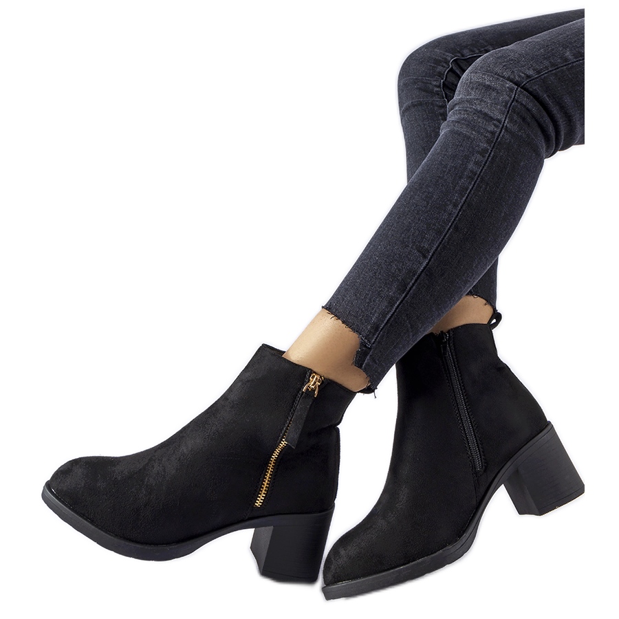 Crne čizme na niskom Ivano Posti (Model JD2317) - klasik u Eco -Zamsz, koji će raditi u svakoj ženskoj garderobi. Elegantna, univerzalna i ugodna -savršena za sezonu jeseni -in -life.