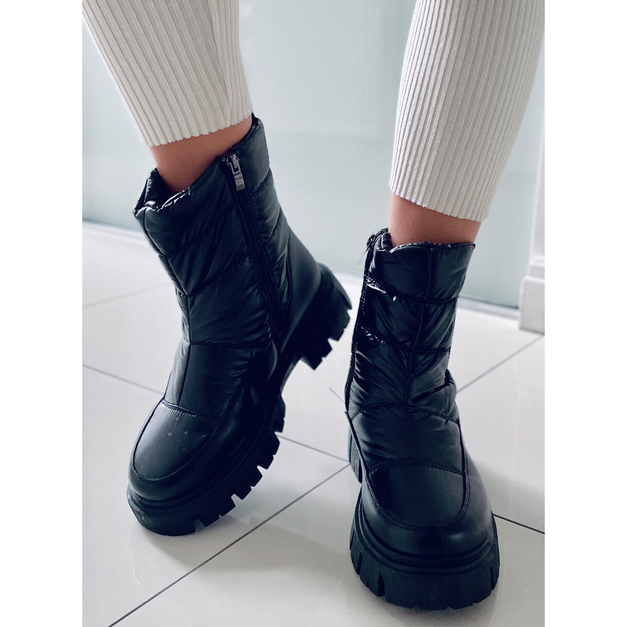 Debeli, crni potplat ne samo da vas izolira od hladnog tla, već jamči i udobnost tijekom svakodnevnih šetnji. Ne morate brinuti o poteškoćama s obuvanjem - praktični patentni zatvarač sa strane gornjeg dijela olakšava ovaj zadatak, čak iu najmraznijim jutrima.