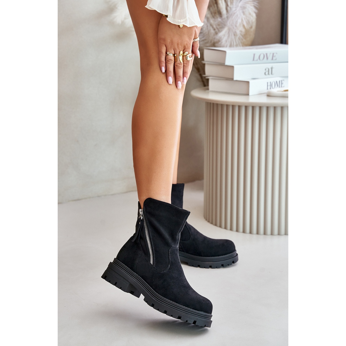 Ovaj je model ugrađen u ravnu petu i platformu, što jamči stabilnost i praktičnost tijekom svakodnevnih aktivnosti. Zaobljeni nos daju cipelama suptilan, ženstveni karakter, a unutrašnjost obložena mekim pokrivačem obuće učinkovito štiti od hladnoće, što ih čini idealnim rješenjem za jesensku i zimsku sezonu.