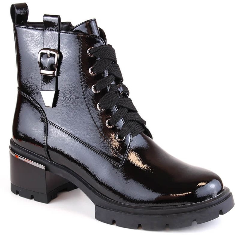 Praktična rješenja, poput bočnog dvorca i čipke, olakšavaju stavljanje i stavljanje na cipele. Visoka peta od 5 cm nudi stabilnost i suptilno povećanje, a oko 13 cm gornji dio kocke dobro omota kocku, povećavajući zaštitu od hladnoće. Tekstilni uložak pruža dodatnu mekoću prilikom hodanja.