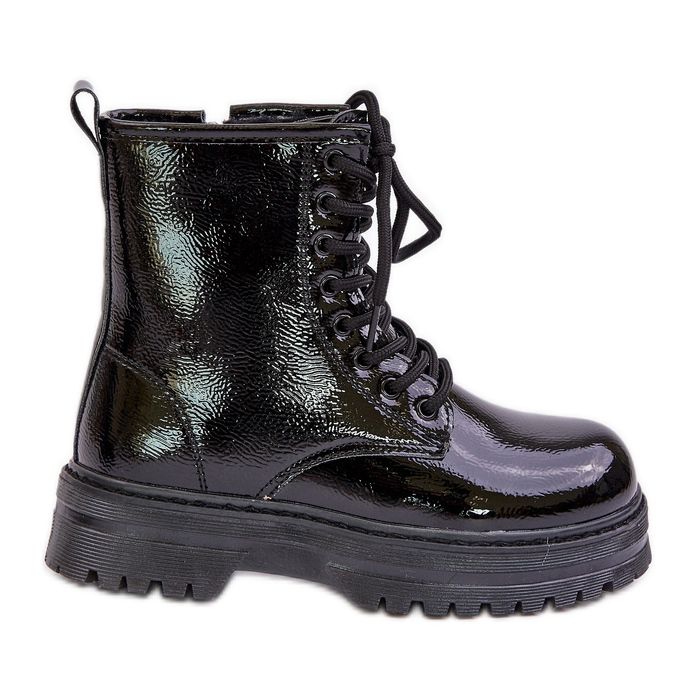 Pojedinosti: Izolirane lakirane čizme za djevojčice s patentnim zatvaračem, crne Novita crna
