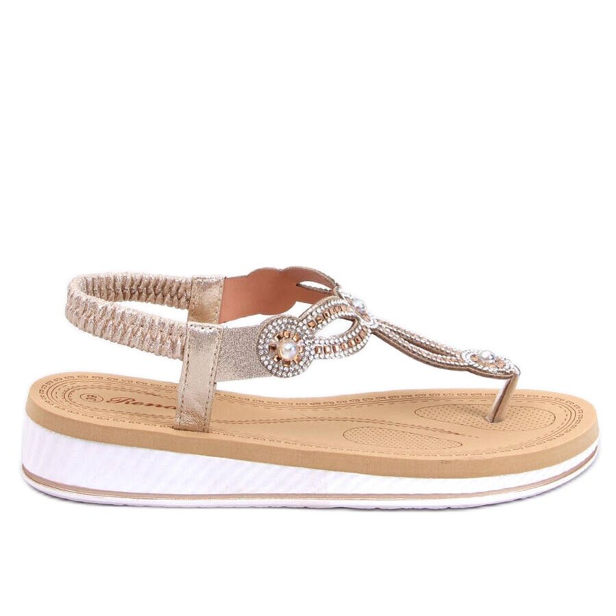 Sandale izrađene od visokokvalitetne ekološke kože i tkanina nisu samo elegantne, već su i udobne. Njihov umetnuti rez čini ih čistom zadovoljstvom, a nedostatak nosa pruža izvrsnu ventilaciju u toplim danima. Zlatna boja i metalik uzorak daju im elegantan karakter, koji će biti savršeni za svakodnevne i ljetne rezultate.
