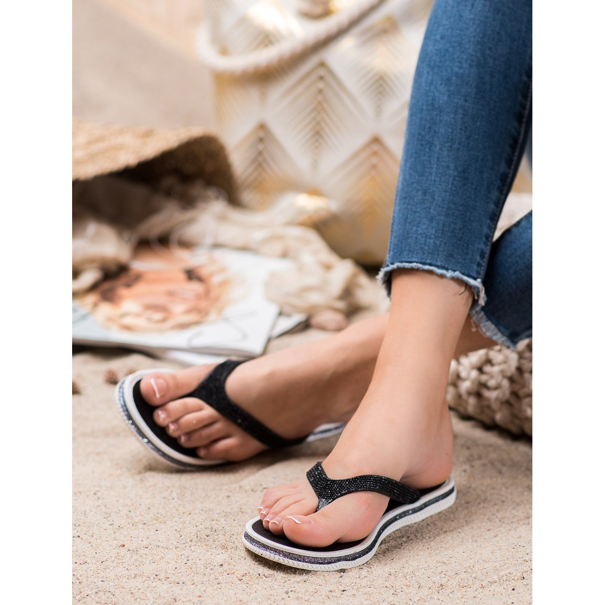 Otkrijte nevjerojatan stil i udobnost sa svjetlucavim japankama iz Bona! Ove elegantne crne japanke savršen su izbor za tople dane i savršena su nadopuna mnogim casual stilovima. Zahvaljujući svojim univerzalnim bojama, savršeno se slažu kako uz ljetne haljine, tako i uz kratke hlačice, dodajući malo sjaja svakom looku.