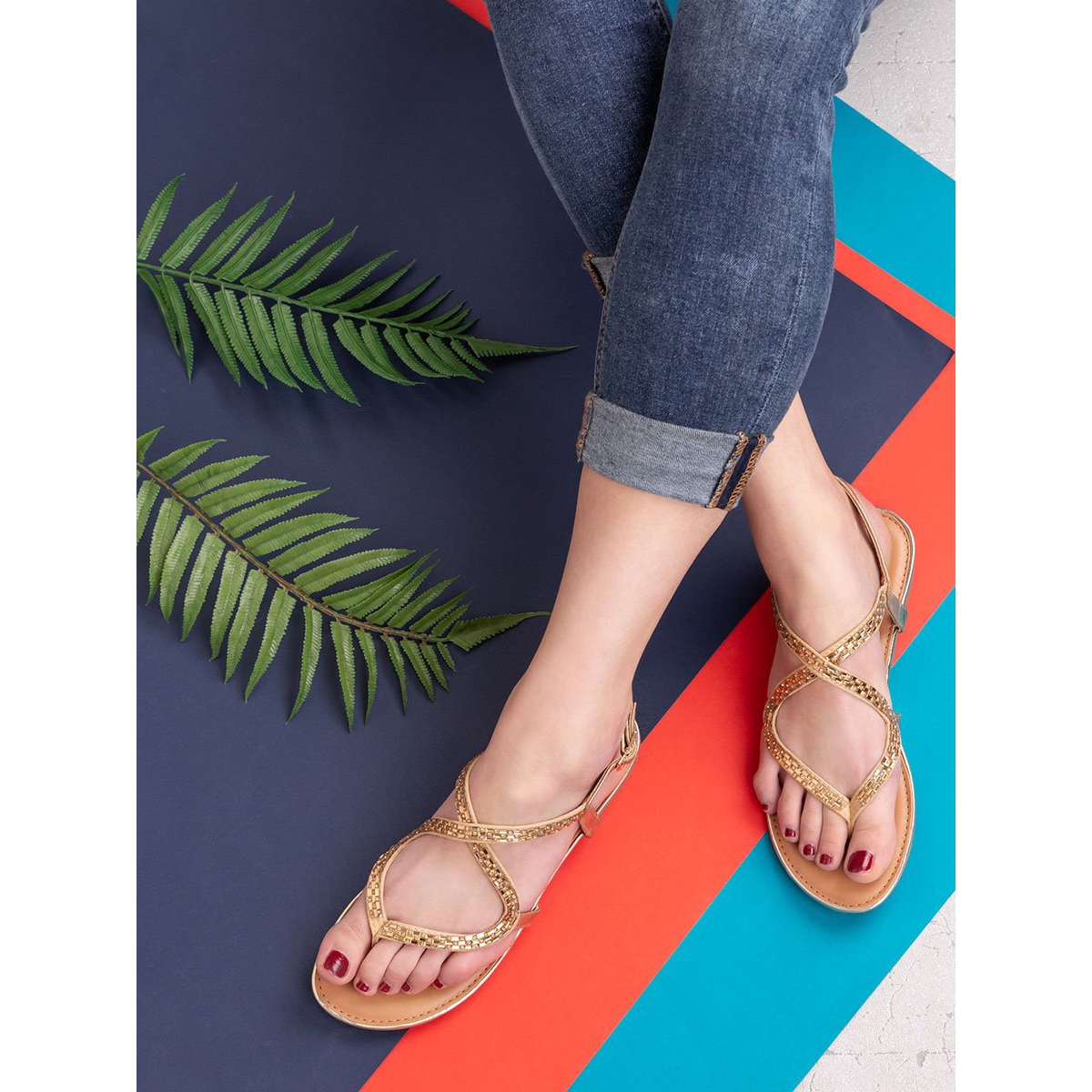 Obuća ima otvorenu petu i kopču, što olakšava obuvanje i izuvanje. Potplat od sintetičkog materijala je gladak i izdržljiv, osiguravajući udobnost pri svakom koraku. Dodatno, žuta boja obogaćena zlatnim detaljima daje japankama moderan i veseo karakter.