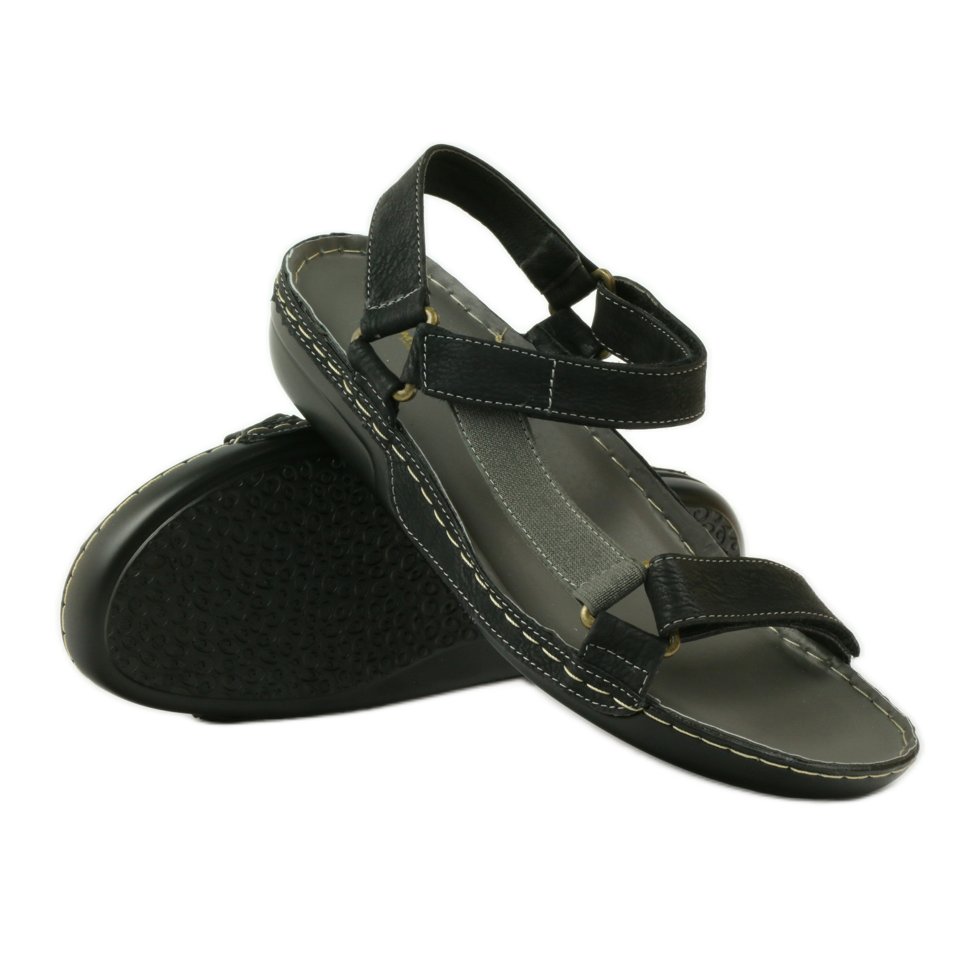 Otkrijte nevjerojatnu udobnost i stil uz sandale M.Daszyński wz.1731. Ove ženske sportske sandale u klasičnoj crnoj boji pravi su must have u ormaru svake žene. Izrađene od visokokvalitetnog materijala nalik na kožu i s umetkom od prirodne kože, jamče ne samo savršen izgled, već i udobnost nošenja tijekom cijelog dana.