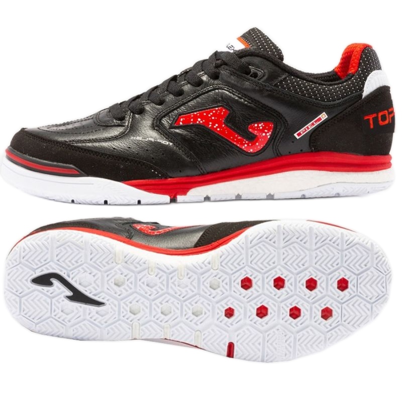 JOMA TOP FLEX BOUND 2301 u - pola muške darove, čvrsto podudarne, u crnoj boji s crvenim naglascima. Low, čipkasti rez pruža malo zadržavanja stopala i punu slobodu pokreta dok se igraju u hodniku.