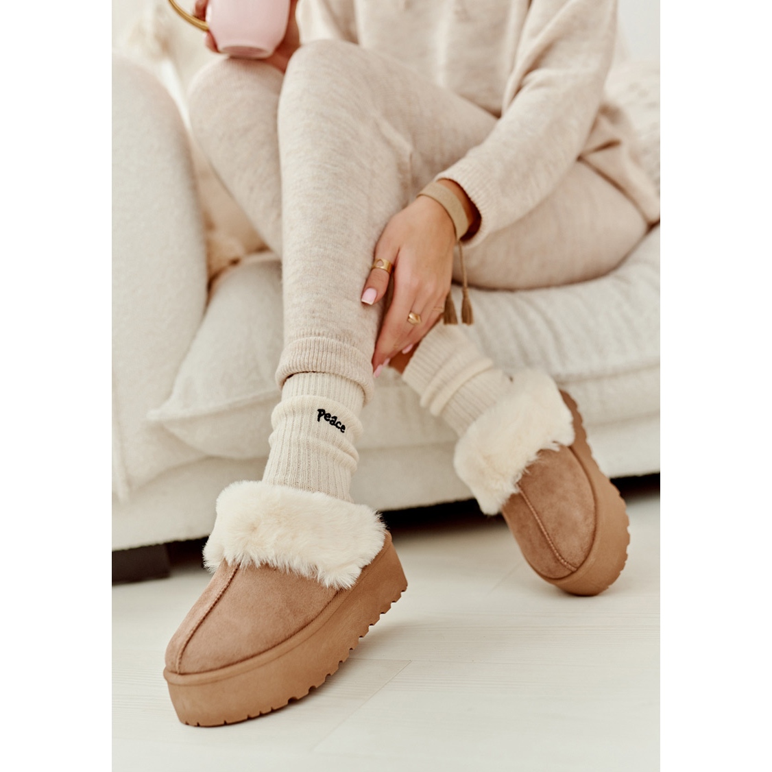 Posebnost ovog modela je debeli potplat od gumenog materijala visine 4,5 cm. Masivna platforma ne samo da dodaje nekoliko centimetara visine, već jamči i optimalnu izolaciju od hladnog poda, što je ključno u hladnim danima. Papuče su postavljene na čvrstu podlogu, što osigurava stabilnost i udobnost korištenja.