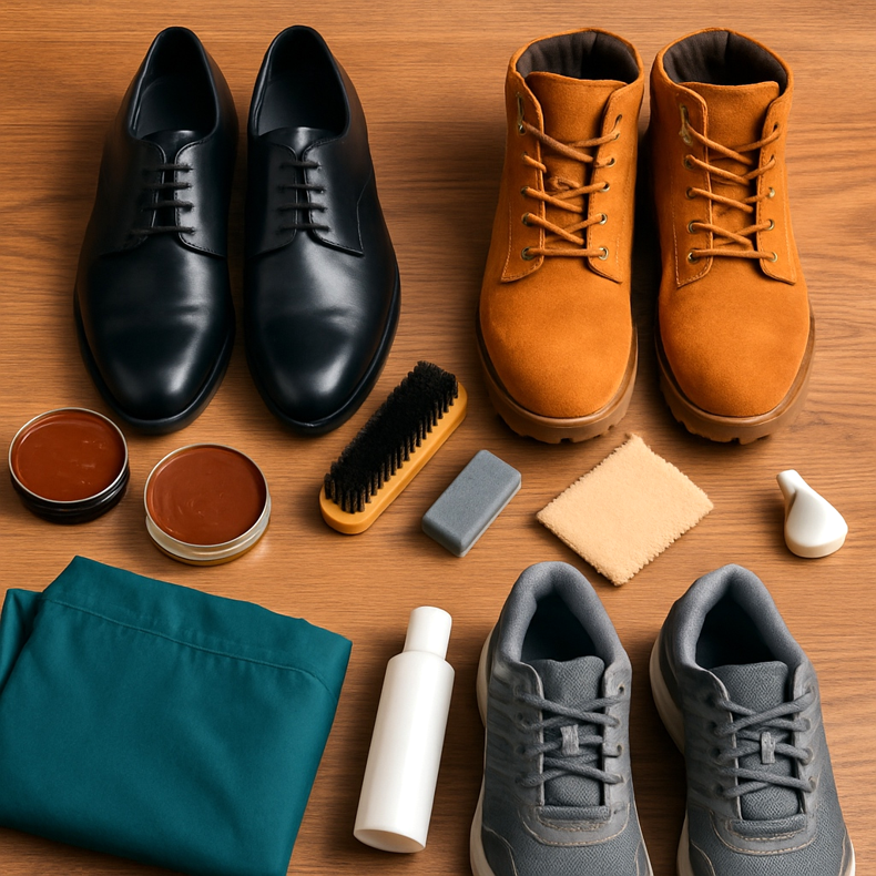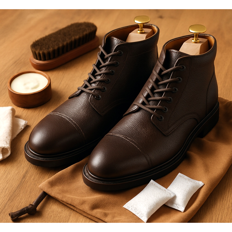 Kupite: kremu za cipele, sredstvo za impregniranje, četke (za glatku kožu i antilop), drvene drvce za cipele, dezodorans za cipele, novine za sušenje.