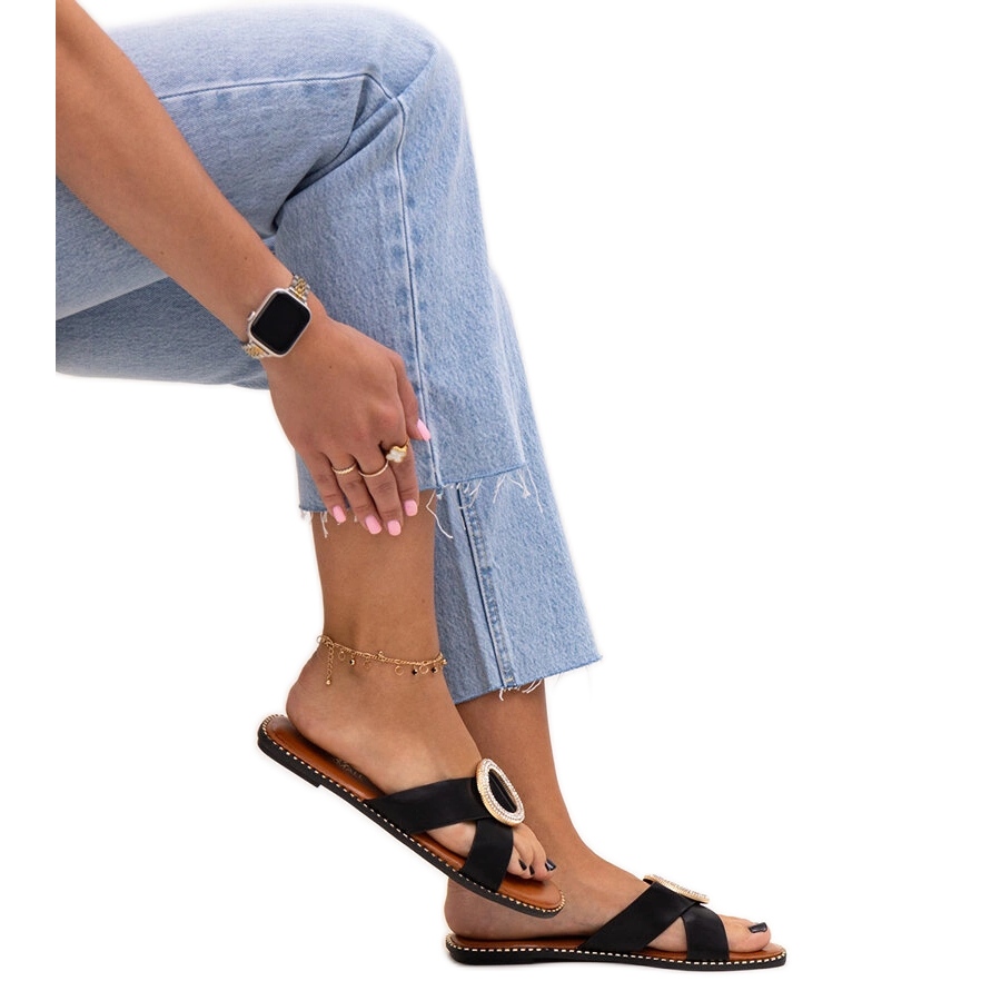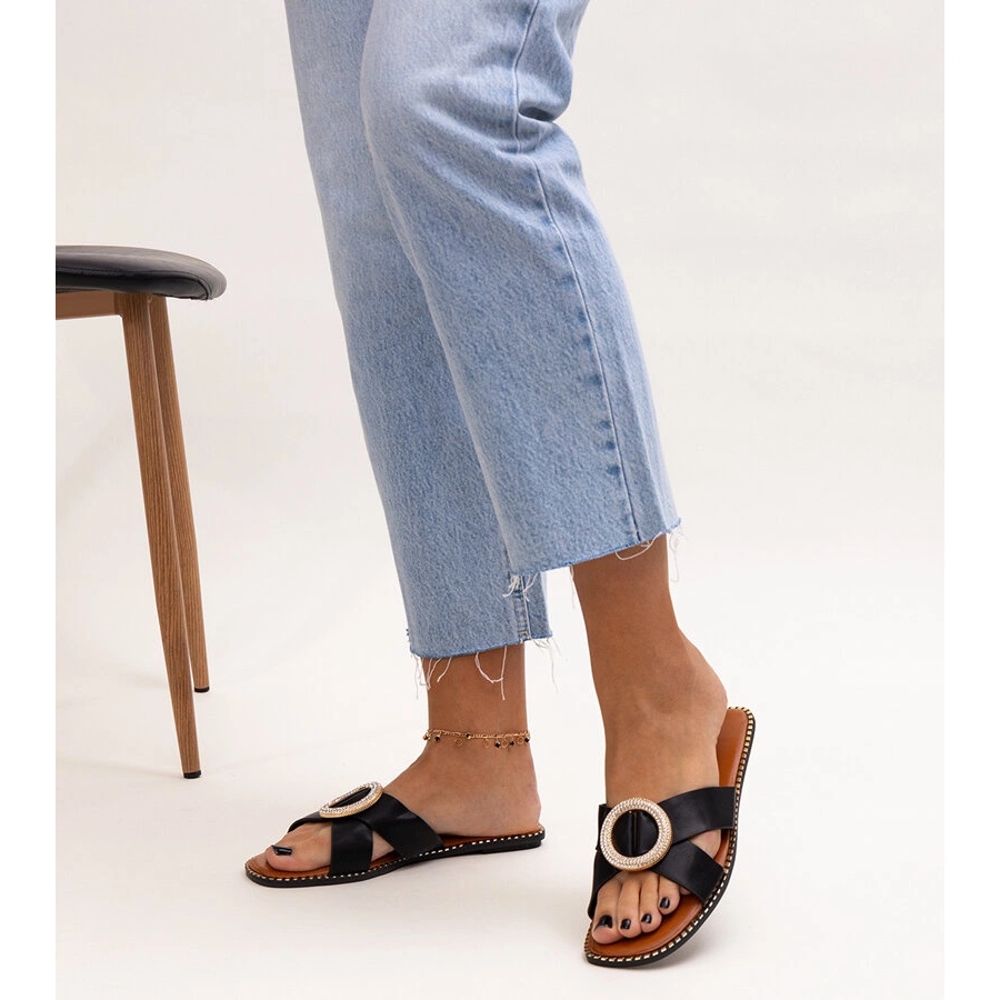 Otkrijte jedinstvene flip -flops ukrašene kopčom u Salimb Rhinestones u klasičnoj crnoj boji, što je odličan prijedlog za vruće ljetne dane. Ovi elegantni, umetnuti Flip -flops kombiniraju udobnost i eleganciju, zahvaljujući što će biti savršen dodatak vašoj ljetnoj stilizaciji.