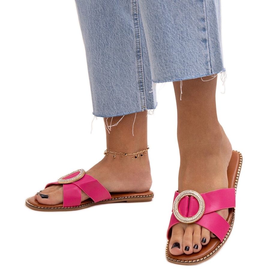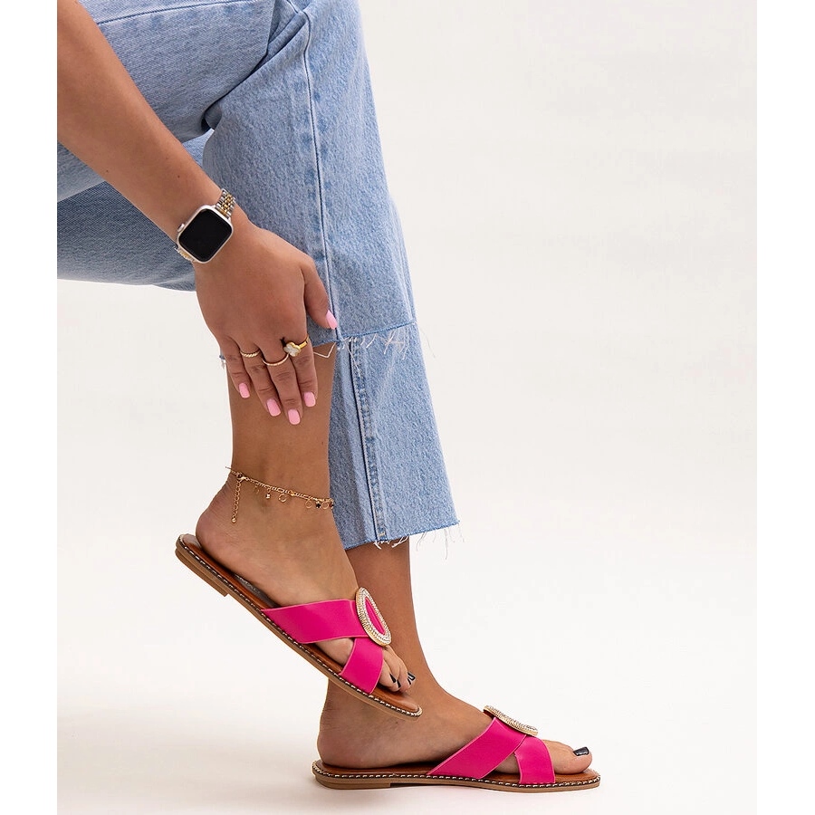 Papuče ukrašene kopčom u Salimba Rhinestones u ružičastoj su savršen izbor za ljetne dane koji kombiniraju udobnost s modernim stilom. Njihov dizajn klizanja omogućuje brzo i prikladno stavljanje, što ih čini izvrsnim pratiteljima tijekom hodanja u praznicima ili opuštanja na plaži. Okrugli nos daje zaklopima moderan izgled, koji će vam sigurno privući oči.