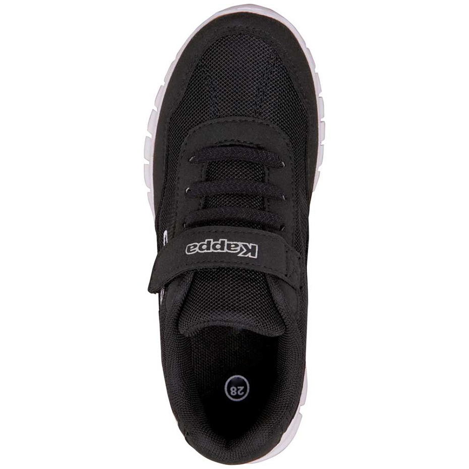 Kappa Slijedite K (260604K 1110) Dječje cipele - elegantne, udobne i funkcionalne gradske cipele za dječake. Crni gornji dio s prigušenim bijelim naglaskom znači da cipele odgovaraju svakodnevnim stilizacijama, a promišljeni dizajn osigurava utjehu tijekom igranja i u školi.