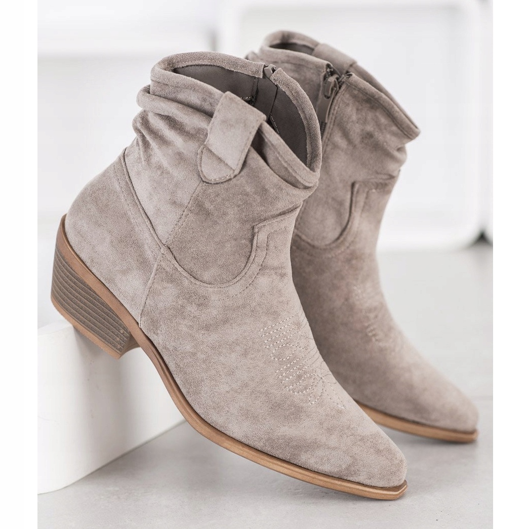 Kaubojske čizme imaju okrugli vrh i gornji dio na patentni zatvarač visine 11-12 cm, što osigurava udobnost nošenja. Stabilan blok visok 5 cm čini ih savršenim za traperice i haljine. Dodatno, unutarnja izolacija pružit će toplinu u hladnijim danima, a izgrađena, ukrućena peta dodaje sigurnost u vašem koraku.