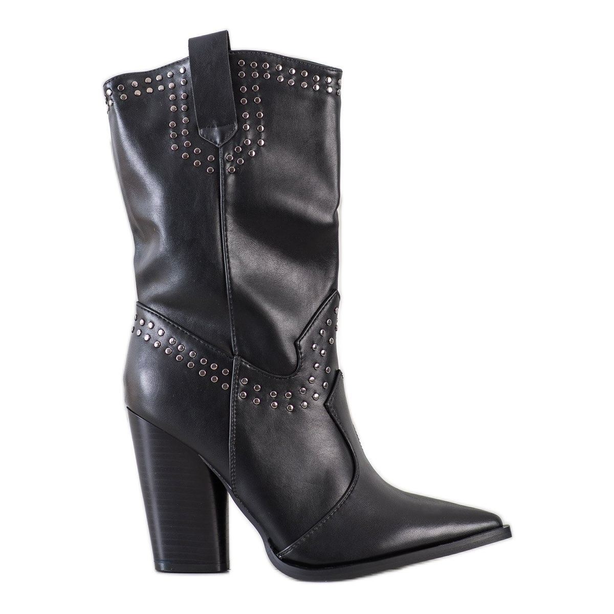 Kaubojske čizme na špic renomiranog proizvođača Seastar elegantan su prijedlog za žene koje cijene moderan i klasičan stil. Visokokvalitetna crna eko koža daje im moderan izgled, a detalji poput srebrnih ukrasa i kamenčića privlače pažnju i dodaju karakter.
