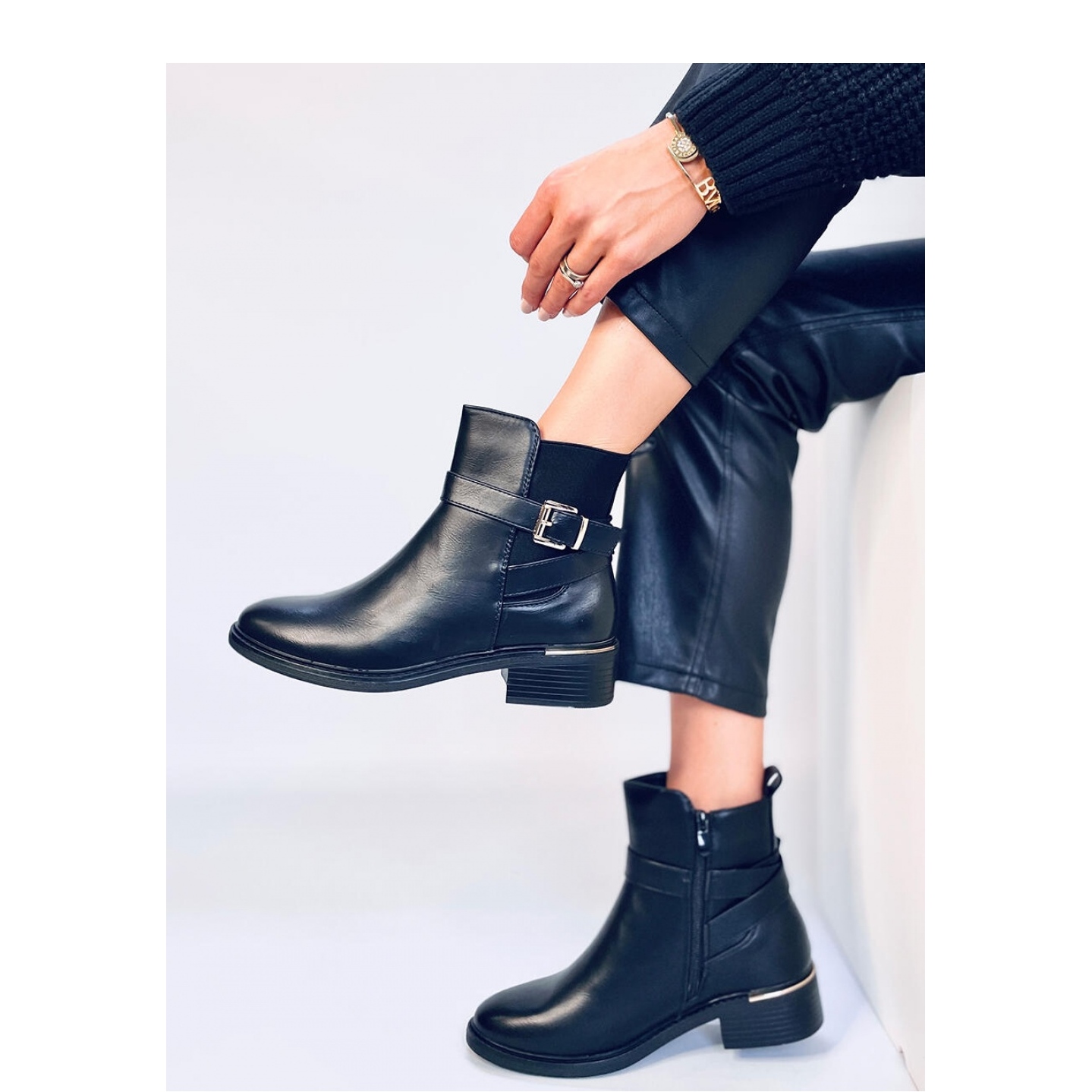 Pojedinosti: Klasične Chelsea čizme s kopčom Cowans Black - Inello crna
