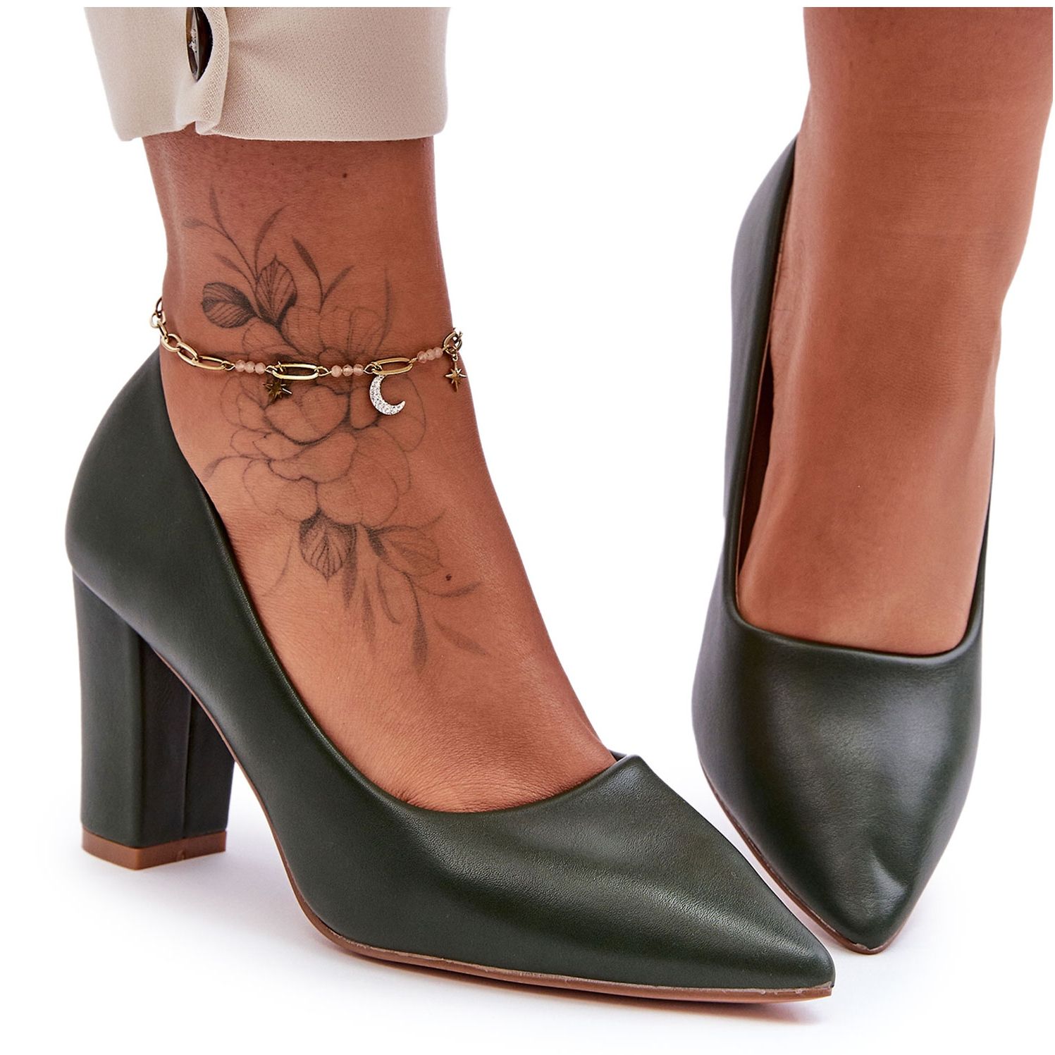 Pojedinosti: Klasične cipele na visoku petu tamnozelene Odessa zelena