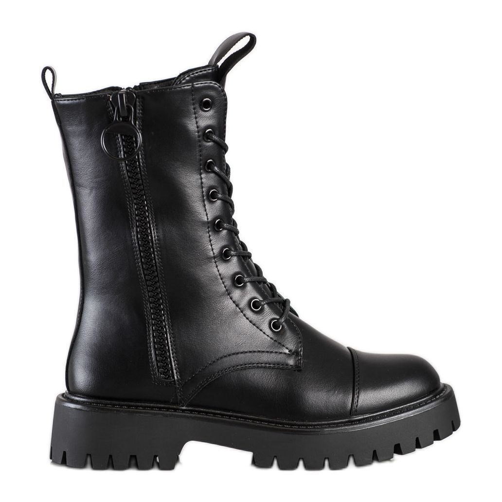 Nudimo klasične crne bovver čizme SHELOVET - savršen izbor za žene koje cijene udobnost i elegantan izgled. Izrađene od visokokvalitetne ekološke kože, ove cipele spajaju moderan dizajn s funkcionalnošću, što ih čini savršenim dodatkom svakom ležernom stajlingu.