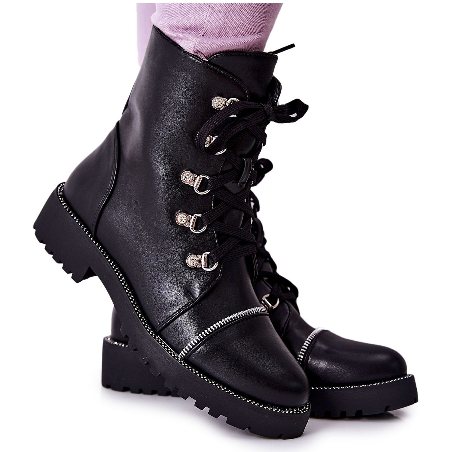 Pojedinosti: PG1 Klasične crne Daiane vezane kožne čizme crna