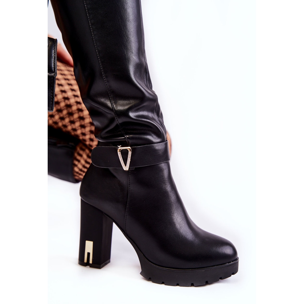 Ove elegantne čizme kopčaju se patentnim zatvaračem, što ih čini jednostavnim za obuvanje i izuvanje. U unutrašnjosti se nalazi izolacija u obliku pokrivača za cipele, koja pruža udobnost i toplinu u hladnim danima. Remen s ukrasom od imitacije cirkona daje im jedinstven karakter.